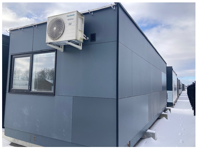 Modul er opvarmet med luft til luft varmepumpe med el radiator på toilet.